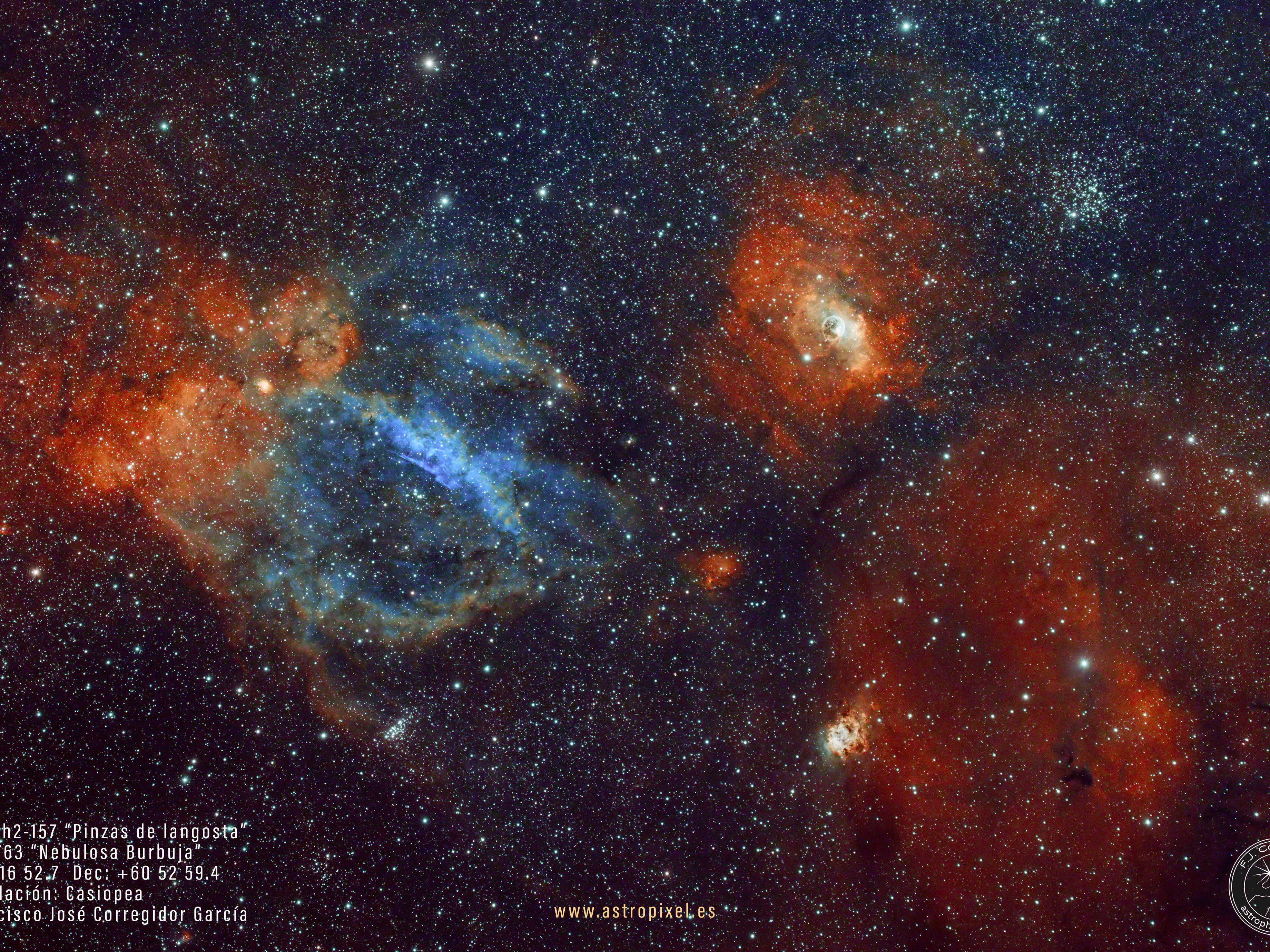 M52, NGC 763, LBN 540: el paisaje de la burbuja